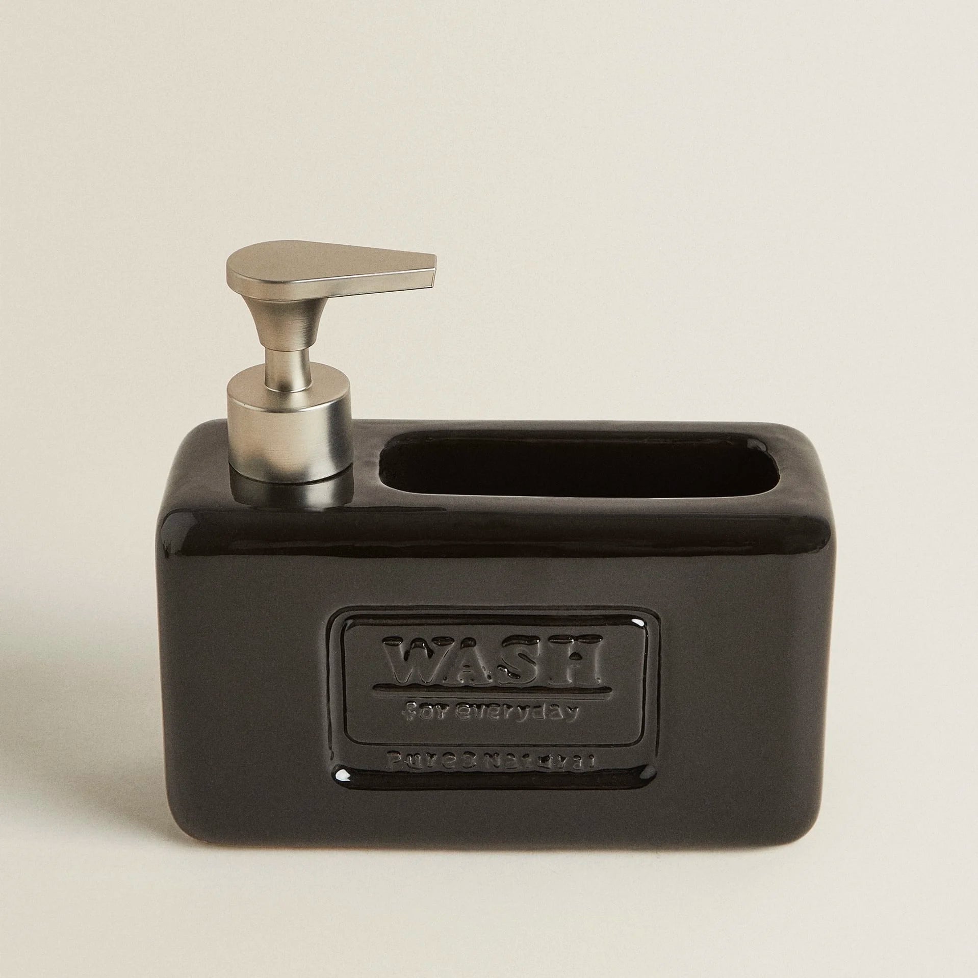 Este dispensador inteligente e elegante é muito mais que um simples recipiente. Fabricado em cerâmica de alta qualidade, ele confere durabilidade, resistência e um acabamento impecável que eleva o visual da sua cozinha. O design pensado para a rotina inclui não apenas um compartimento para o detergente, mas também um espaço integrado para armazenar a esponja ou a escova de louça, mantendo sua pia sempre arrumada e livre de bagunça.