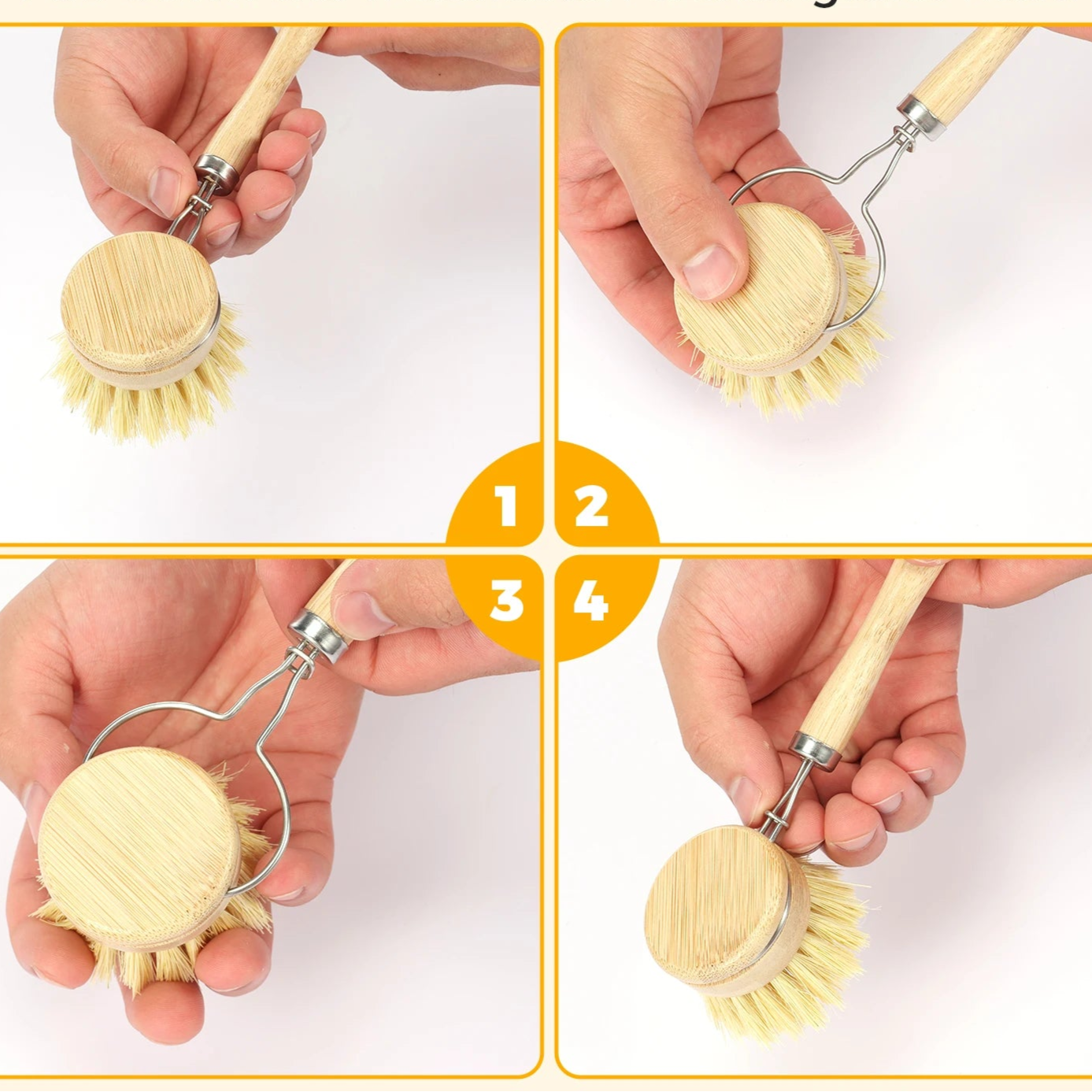 Desenvolvida para o uso diário, esta escova se destaca por ser ecológica e altamente eficiente. Sua estrutura é feita de bambu natural, um recurso renovável e resistente que não só minimiza o impacto ambiental, mas também adiciona um toque orgânico e charmoso à sua cozinha. As cerdas robustas e duráveis foram cuidadosamente projetadas para remover sujeiras e resíduos sem riscar suas panelas, pratos e superfícies, garantindo uma limpeza profunda com o mínimo esforço.