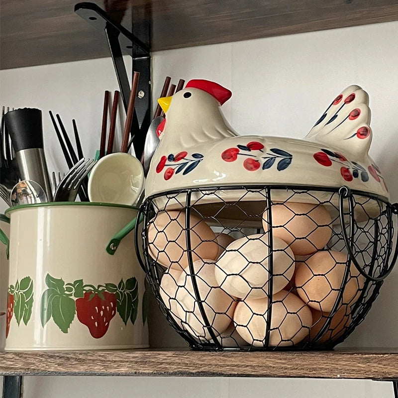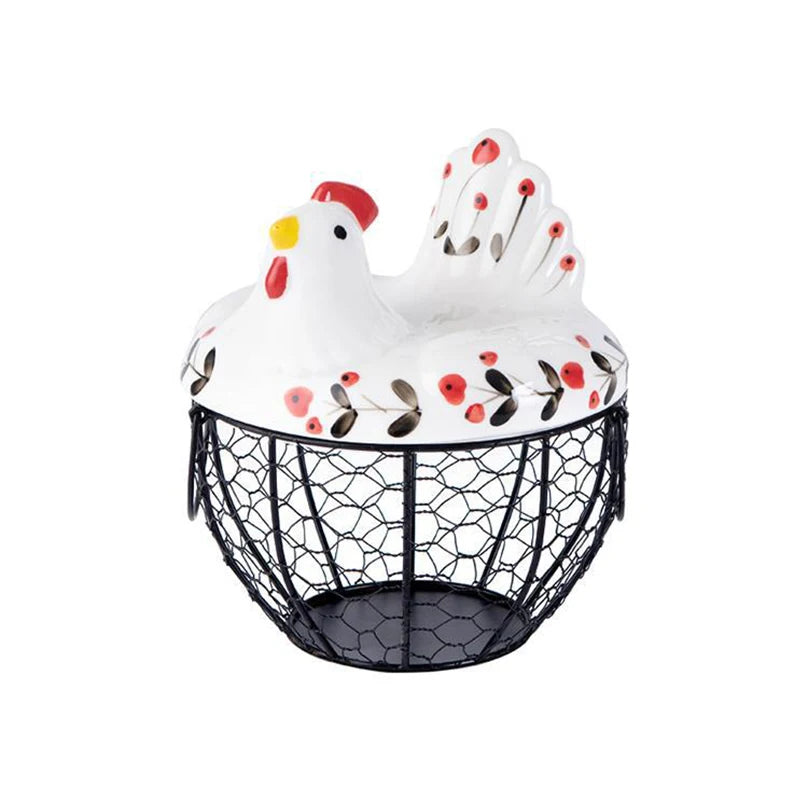 Porta Ovos de Galinha Ceci Home: Cerâmica e Ferro para Organização, Frescor e Charme Rústico na Cozinha