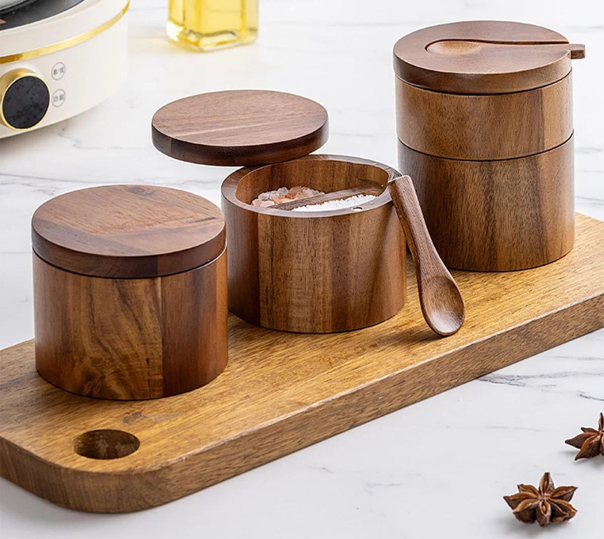 Porta Tempero e Especiarias de Madeira Acácia Ceci Home: Organização, Beleza Natural e Sabor no Coração da Cozinha
