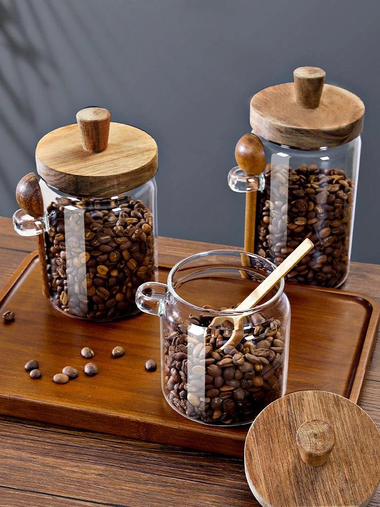 Pote de Vidro Hermético Ceci Home com Tampa e Colher de Madeira: Organização Elegante e Conservação Perfeita para Sua Cozinha