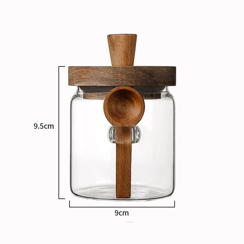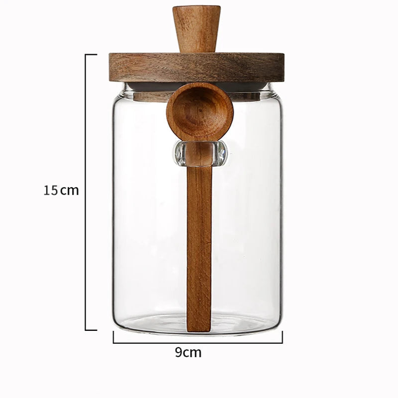 - Beleza Natural: Vidro transparente de alta qualidade e tampa com colher de madeira para um toque elegante e acolhedor.