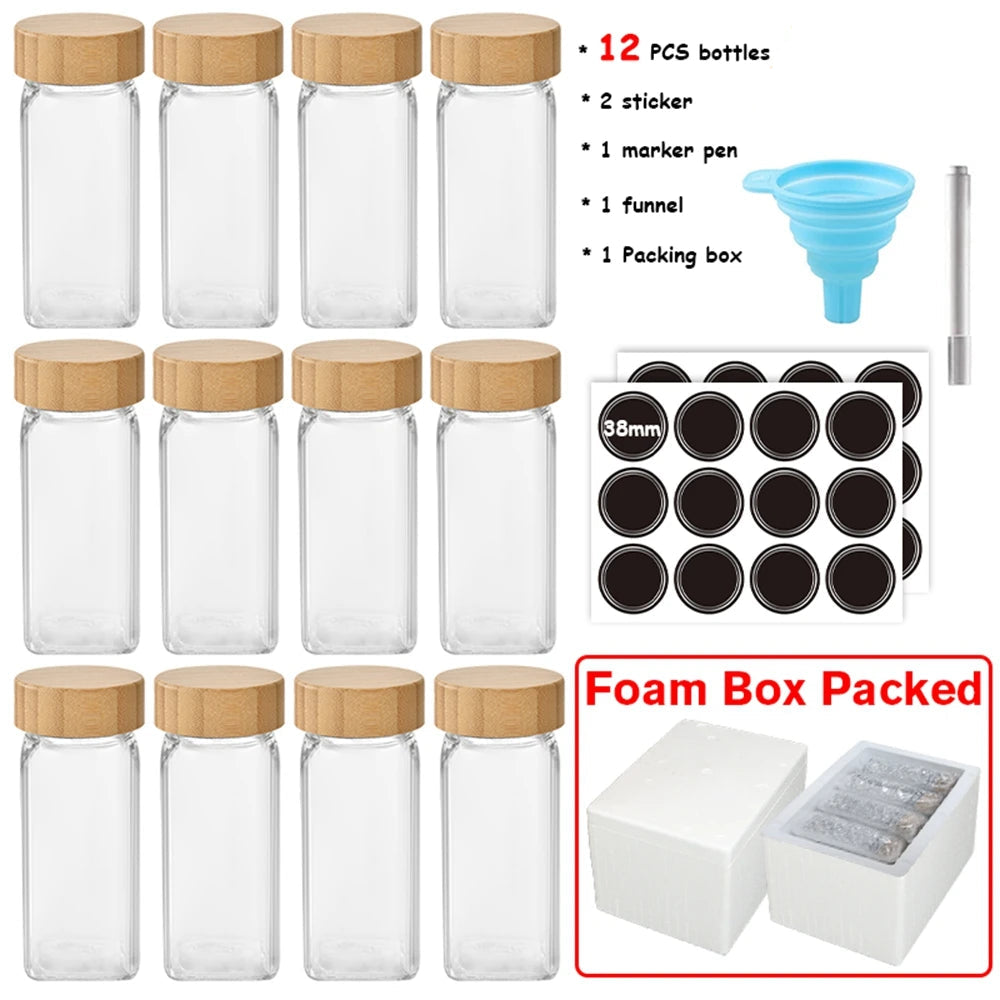 Pote de Vidro para Tempero Ceci Home com Tampa de Bambu: Organização Completa e Sabor Fresco na Cozinha (Com Funil, Etiquetas e Caneta!)